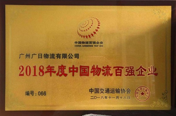 廣日物流榮獲“2018年度全國先進物流企業(yè)”和“2018年度中國物流百強企業(yè)”稱號