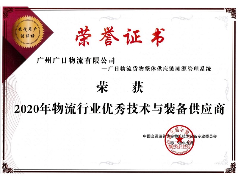 2020年9月26日,由中國交通運輸協(xié)會主辦的2020(第三屆)中國智能物流技術裝備大會暨物流技術裝備企業(yè)家論壇在上海召開。此次大會以“2020疫情下的變革與挑戰(zhàn)”為主題,聚焦探討國內外疫情下物流技術與裝備發(fā)展的新趨勢,全面解密物流企業(yè)如何布局“新基建”加快實現轉型升級。會上,廣日物流憑借自主研發(fā)的“貨物整體供應鏈溯源管理系統(tǒng)”及自身過硬的技術實力,獲評“2020年物流行業(yè)優(yōu)秀技術與裝備供應商”及“2020年物流行業(yè)數字化轉型先進企業(yè)”。